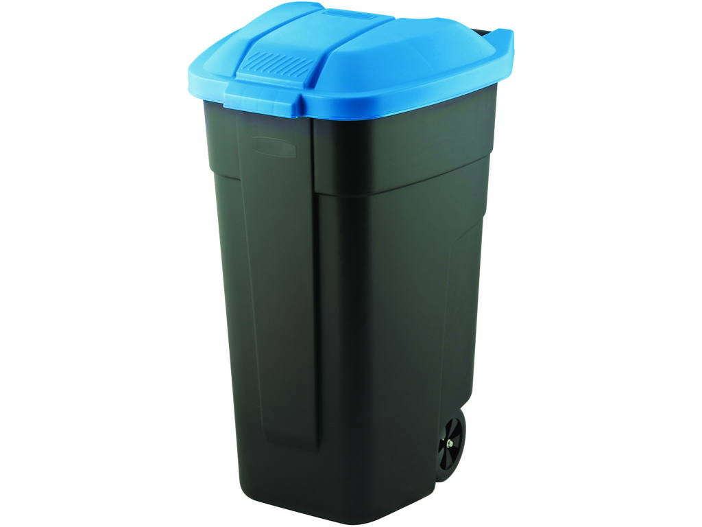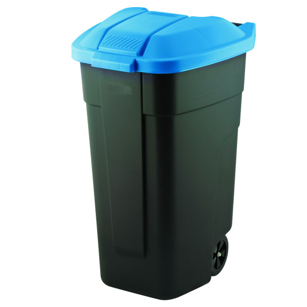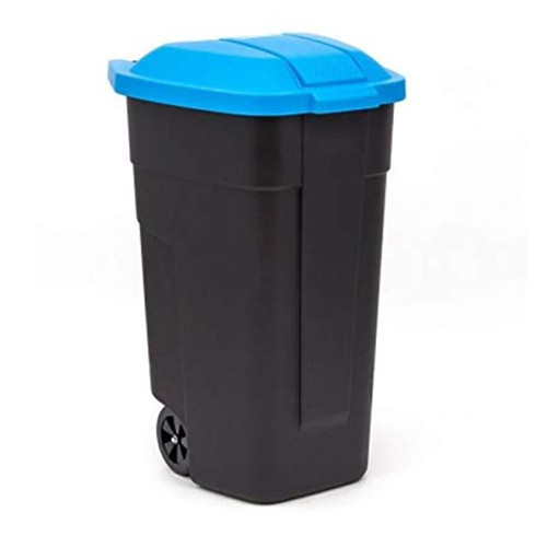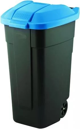 Görgős műanyag kerti szemetes 110 L fekete - kék tetővel