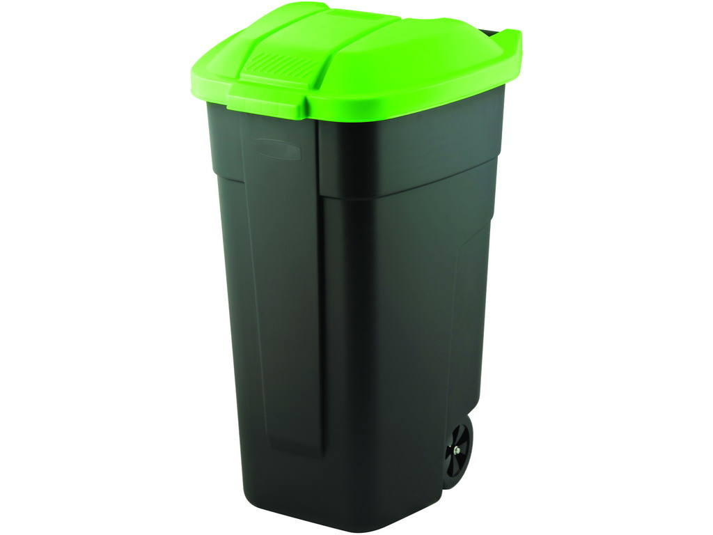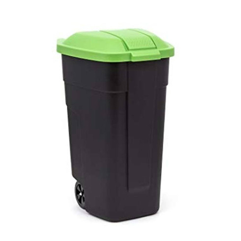 Görgős műanyag kerti szemetes 110 L fekete - zöld tetővel