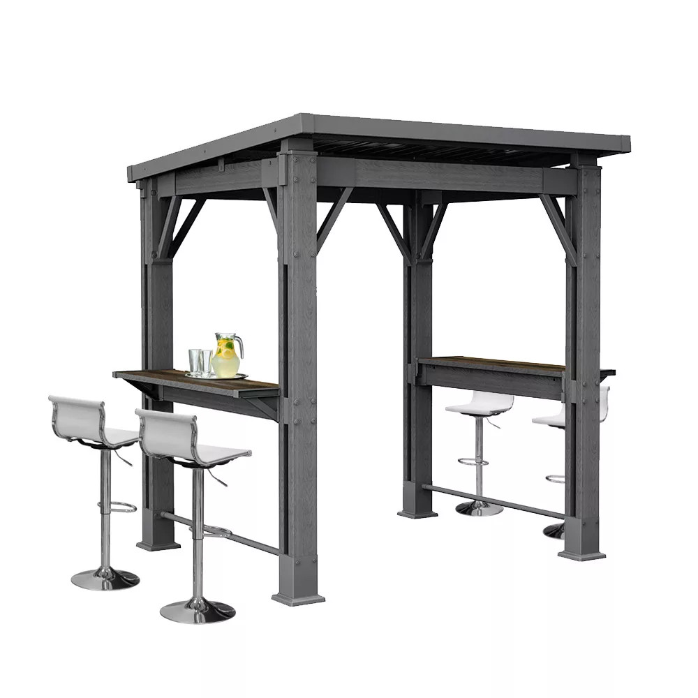 A beépített tálalópolcok mindent kéznél tartanak, nem kell többet futkosni a konyhába, vagy ott egyensúlyozni a tányérokkal. Helye van a grill eszközöknek, italoknak, és akár barátaid is leülhetnek melléd beszélgetni, miközben sül a hús. Ez nem csak egy fedett tér – ez a saját szabadtéri konyhád.