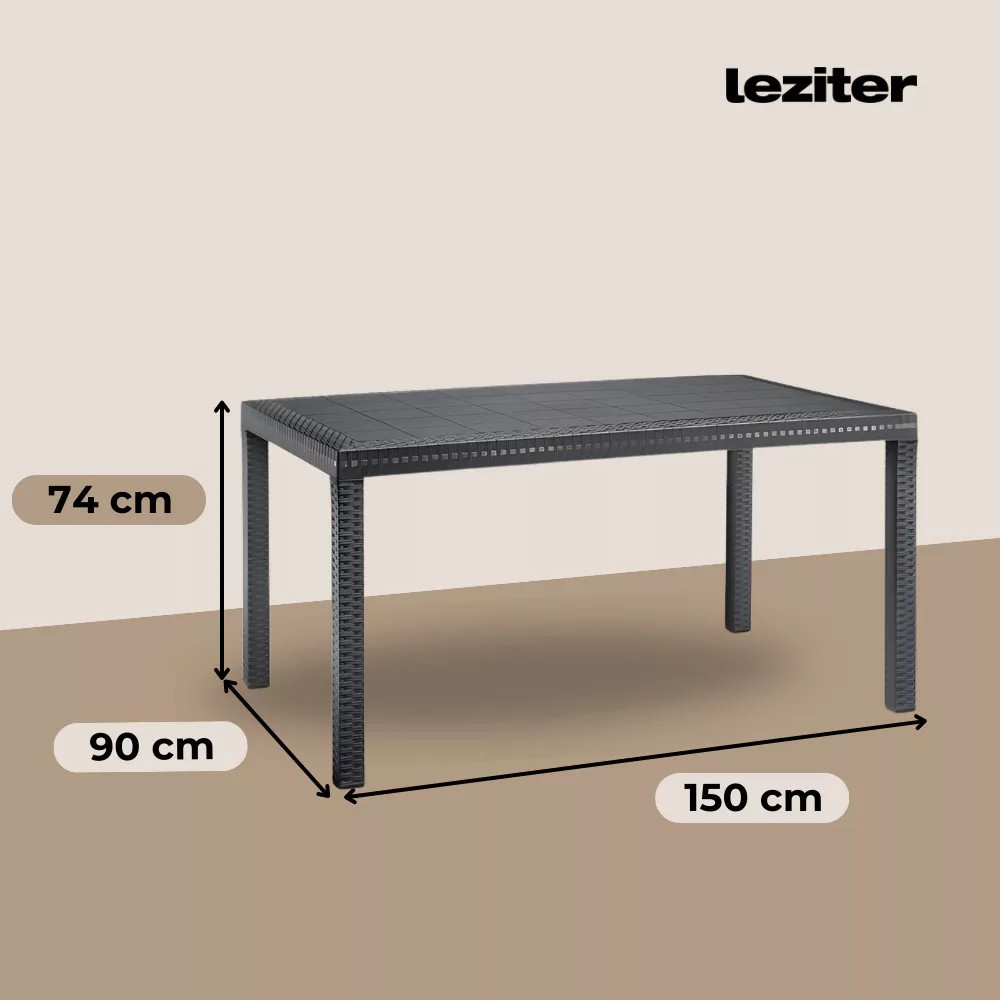 Olaszországban készült ez a grafit színű, kényelmes és elegáns, 150 x 90 x 74 cm-es négyszögletes magas rattan asztal. Időjárás álló műanyagból készült, medence mellé is tehető. Időtálló bútordarab, évek múlva is olyan lesz, mint ha még új lenne. Könnyen összeszerelhető, nincs szükség szakmai tudáshoz hozzá.