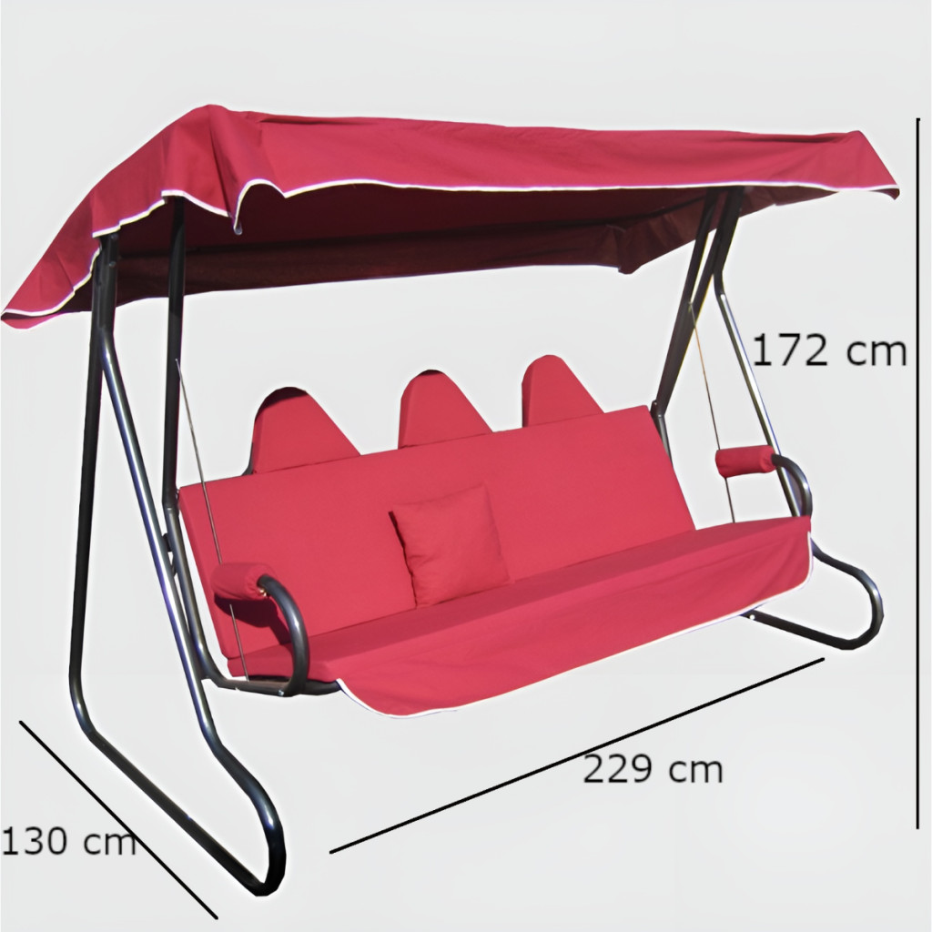 Vastag vázas hintaágy,40 x 1.5 csőből készült. Ülőfelülete 190 x 55 cm-es melyre lapszivacsot teszünk. A háttámla és az ülőfelület egyaránt erős vashálóból készült. A háttámla három fejtámlás és dönthető. A termék szinterezéssel felületkezelve.