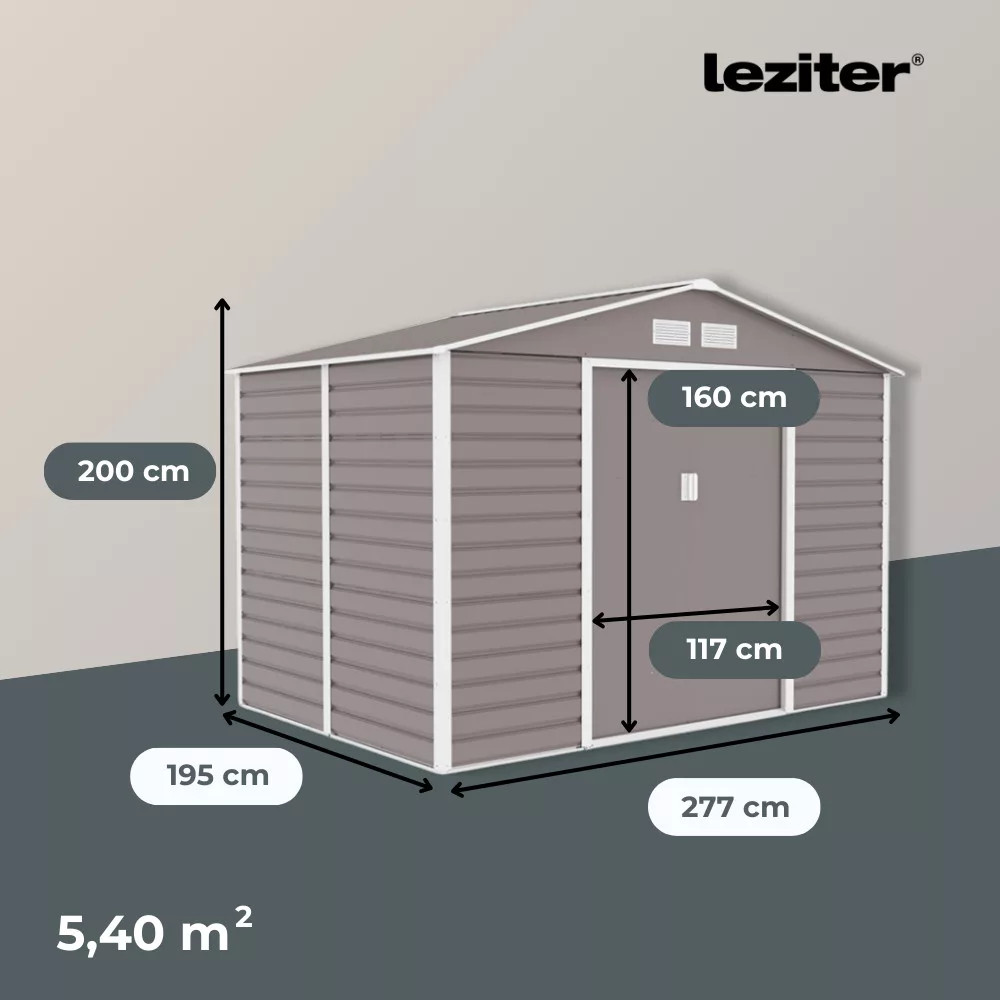 - Méret: 277 x 195 x 200 cm – A kompakt méretű tároló ház ideális választás mindazok számára, akik kisebb kerti eszközöket és gépeket szeretnének egy helyen tárolni.