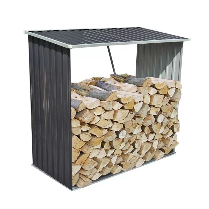 A tároló négyszög alakú, ennek köszönhetően a benne tárolt tűzifa nem ömlik ki oldalra, és fedett.
