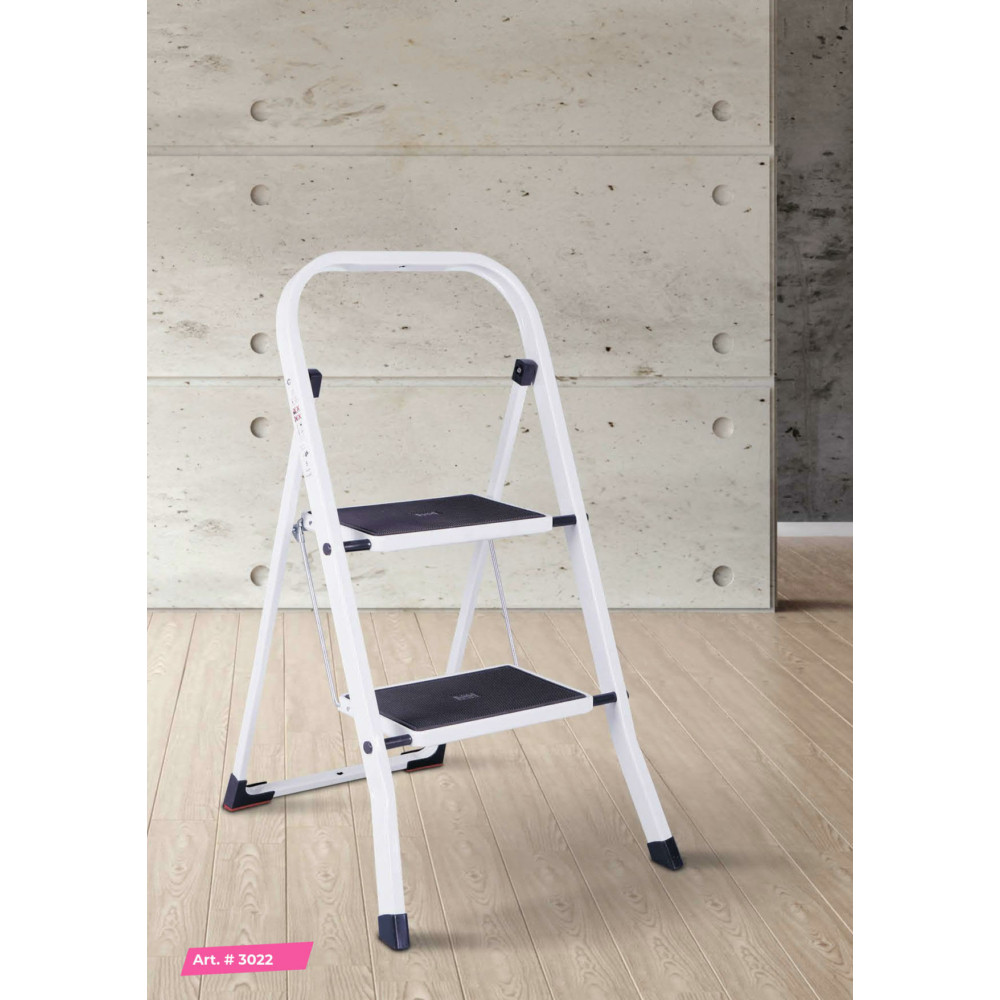 Kétszintes acél háztartási fellépő csúszásmentes fehér 3022