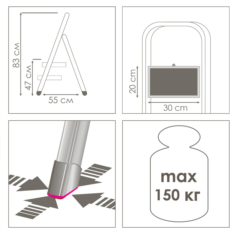 Kétszintes acél háztartási fellépő csúszásmentes szürke 2102