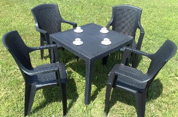 Erős műanyag kerti étkező szett. 4 db Eden szék antracit szürke és 1 db King asztal antracit szürke műanyag kerti bútorból áll a kerti szett. Antracit szürke színben áruljuk. Súly: 19,6 kg. 4 személyes kerti szett. Olasz kerti bútor. Stabil kerti asztal. Mint ahogy a nevéből is adódik, ez egy királyi asztal. Könnyen összerakható. Az Eden székek kényelmes, erős, magas támlás kerti székek. Nevét az Édenről kapta, mert ebben a székben, egy gyönyörű kertben vagy tengerparton akár az édenben is érezheti magát. Rakásolható székek. A kerti szettet kertekbe, nagyobb teraszokra ajánljuk, akár magánszemélyeknek akár vendéglátóipari egységekbe.