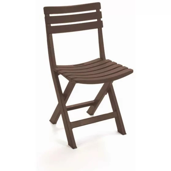 Kis helyen tárolható. Erős, masszív kerti szék. Barna színben áruljuk. Fa hatású műanyag kerti szék.