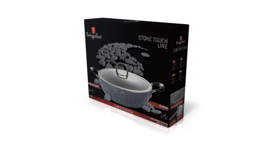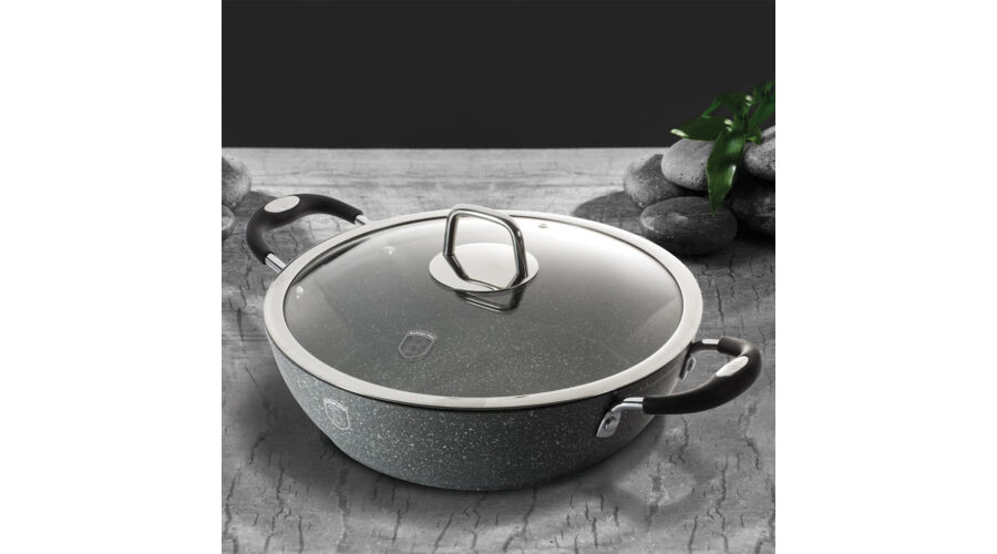 Lábas kő hatású márvány bevonattal, hőálló szilikon fogókkal, fedővel, 32 cm