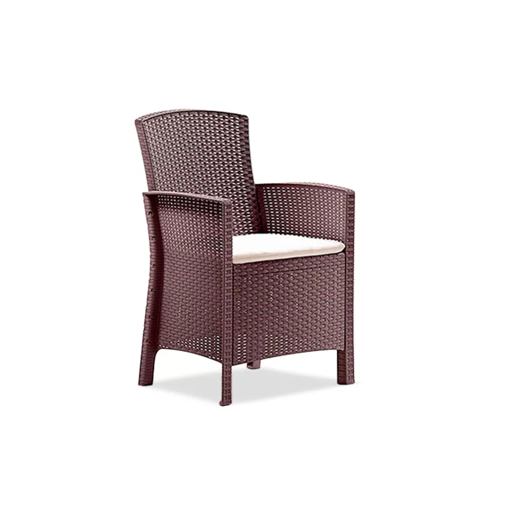 Ez a karfás szék 60 x 56 x 90 cm-es méretével bármilyen környezetben tökéletesen mutat. Formájának köszönhetően egy szűkebb területű erkélyen, vagy teraszon is elfér a hozzá illő asztallal, mint például a Lima Balcony szettünkben. A szék kialakítása egy fotelra emlékeztet, mely nemcsak elegánssá, de kényelmesebbé is teszi a benne töltött időt. Ezt segíti a székhez tartozó ülőpárna is. A párnák színe pár árnyalattal eltér a szék színétől és előny, hogy a szennyeződések kevéssé látszódnak rajta.