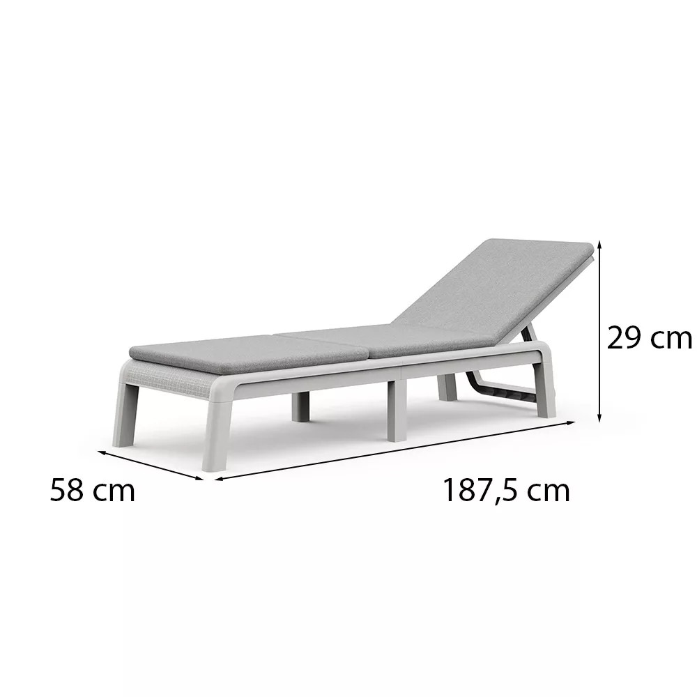 A Mallorca kerti nyugágy természetes, valamint 4 pozíciós háttámla garantálja a kényelmes pihenést. Ellenáll az időjárás viszontagságainak és az UV sugárzásnak. Nagyon könnyű tisztán tartani. Párnával.