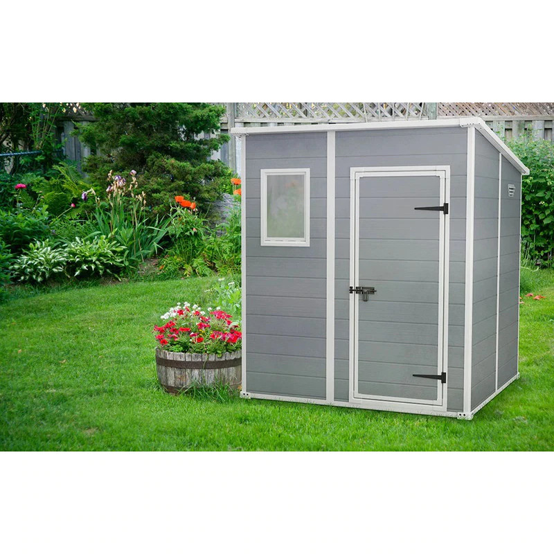 A MANOR PENT szerszámos ház szolid szerkezete még a legigényesebb felhasználót is lenyűgözi. A dupla falak és a szolid szerkezet hosszú élettartamot garantál. A beépített szellőzőrendszer állandó friss levegőt biztosít, megvédve a belteret a nedvesség káros hatásától. A szerszámos házban különböző kerti szerszámokat és eszközöket, függőágyat, nyugágyat stb. tárolhat. Karbantartást nem igényel, nem korrodálódik, nem hámlik le a bevonat vagy rothad meg az anyaga.