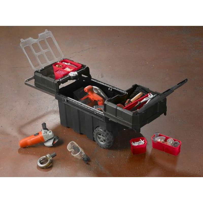 A szerszámosládán egy fogantyú, illetve két kerék is van, mely tartozékok hozzájárulnak a nagyfokú mobilitáshoz. A tárolóelem tartalmát néhány egyszerű mozdulattal a munkaterületre lehet vinni, és bármikor könnyen meg lehet változtatni a helyzetét az által, hogy a kerekein odébb toljuk. A szerszámosláda kiváló minőségű műanyagból készül, ami garantálja a termék stabilitását, tartósságát. A használat közben keletkező mechanikus erőhatások nem okozhatnak kárt a szerkezetben. Hosszú évek után is olyan, mintha újonnan került volna a háztartásba, garázsba, műhelybe.