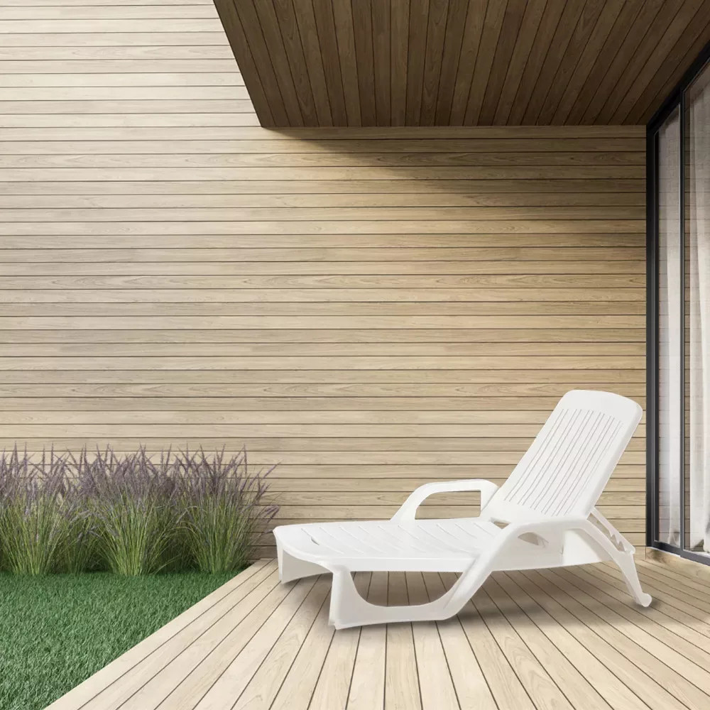 Lettino műanyag kerti fix napozóágy fehér O42