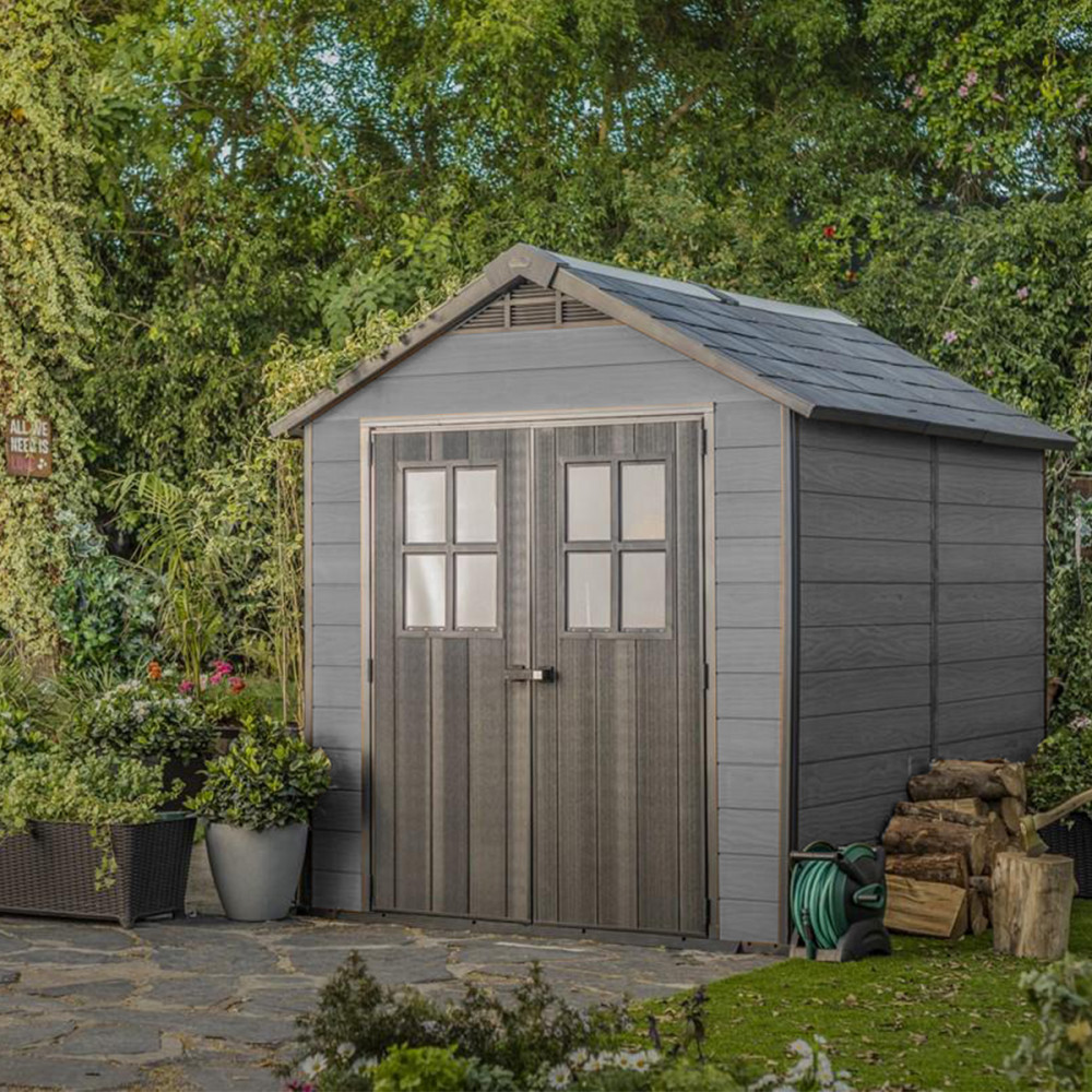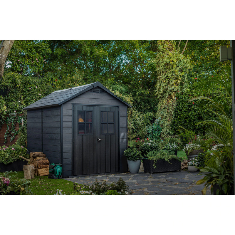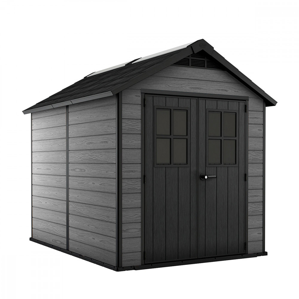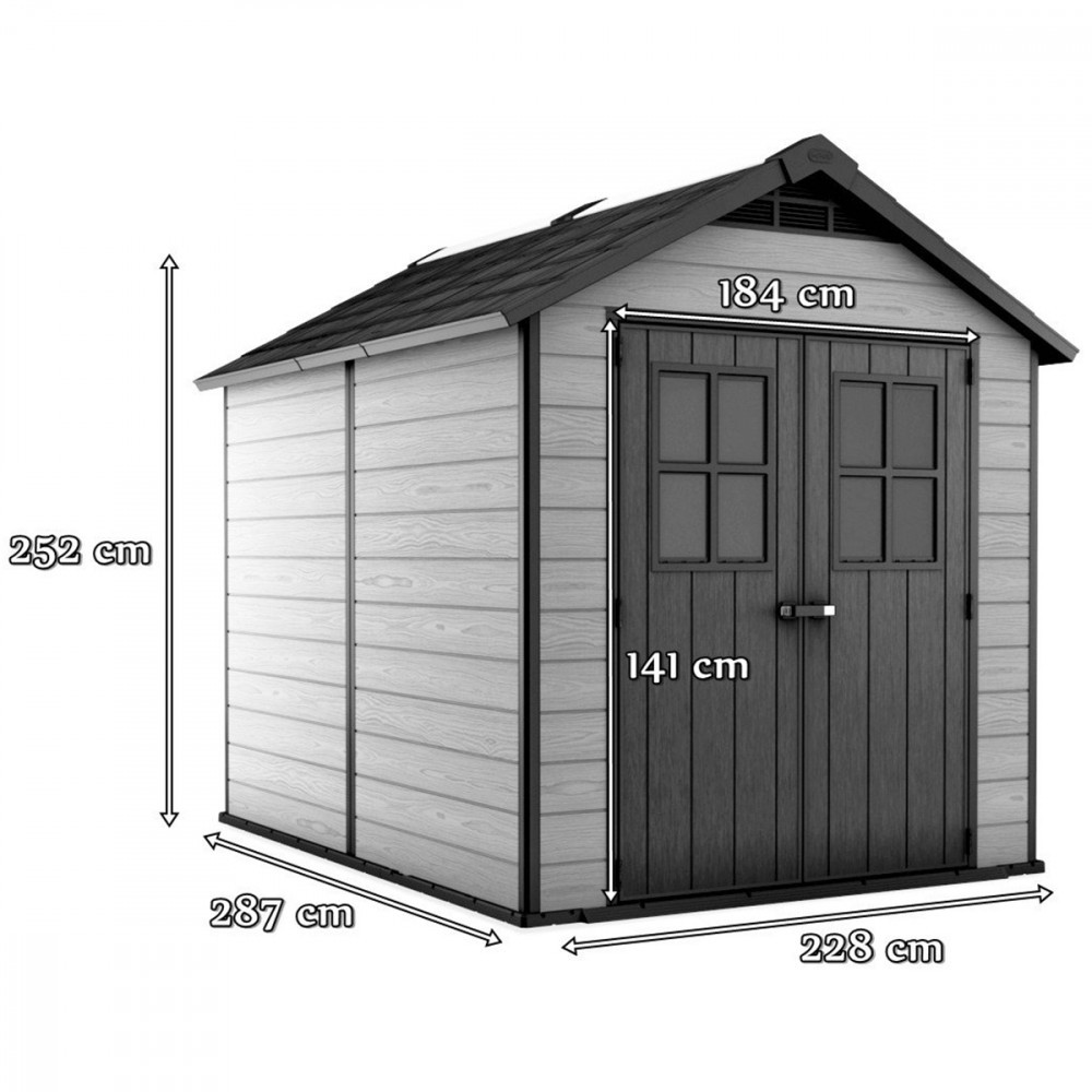 Acéllal erősített kettős falú konstrukció az extra tartósság és stabilitás érdekében. Az innovatív fa-műanyag kompozit (WPC) falak lehetővé teszik, hogy élvezze a valódi fa kinézetét és érzetét, miközben biztosítja az időjárásálló műgyanta összes előnyeit. Teljesen karbantartásmentes, soha nem fog rozsdásodni, rothadni és meg nem hámlani. A nagy teherbírású padlólemez védi a nehéz tárgyakat a sár és az esővíz ellen. Különösen erős tető akár 30 PSF hóterhelésig is támogatható (150 kg / négyzetméter). A teljes hosszúságú tetőablakok sok természetes fényt engednek be. A beépített szellőzés nagy mennyiségű légáramot tart fenn. Az ajtók zárolhatók az extra biztonság érdekében (a zárakat nem tartalmazza). Könnyű összeszerelés, nincs szükség speciális szerszámokra.