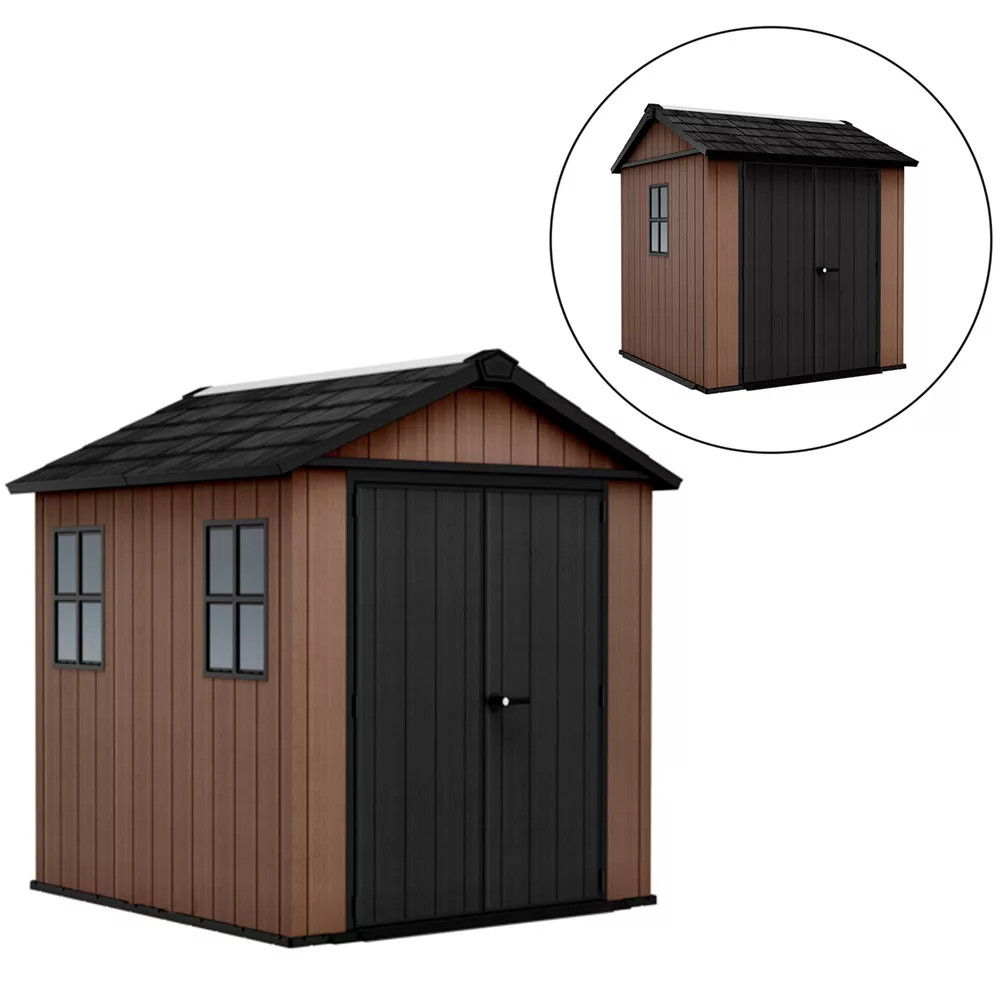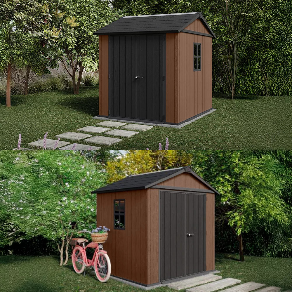 Acéllal erősített kettős falú konstrukció az extra tartósság és stabilitás érdekében. Az innovatív fa-műanyag kompozit (WPC) falak lehetővé teszik, hogy élvezze a valódi fa kinézetét és érzetét, miközben biztosítja az időjárásálló műgyanta összes előnyeit. Teljesen karbantartásmentes, soha nem fog rozsdásodni, rothadni és meg nem hámlani. A nagy teherbírású padlólemez védi a nehéz tárgyakat a sár és az esővíz ellen. Különösen erős tető akár 30 PSF hóterhelésig is támogatható (150 kg / négyzetméter). A teljes hosszúságú tetőablakok sok természetes fényt engednek be. A beépített szellőzés nagy mennyiségű légáramot tart fenn. Az ajtók zárolhatók az extra biztonság érdekében (a zárakat nem tartalmazza). Könnyű összeszerelés, nincs szükség speciális szerszámokra.
