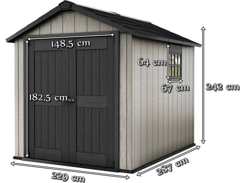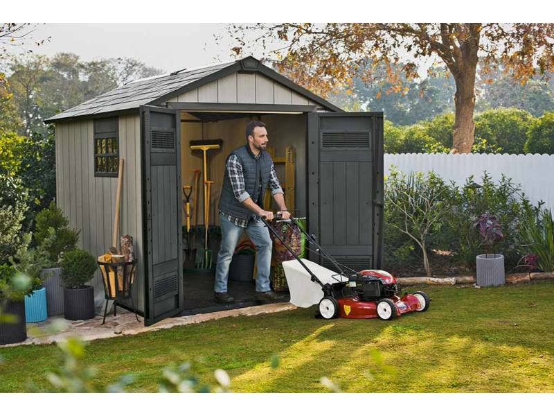Az átgondolt, megerősített acélszerkezetű OAKLAND 759 szerszámos ház elnyeri mindazok tetszését, akik a funkcionalitás és a jó stílus egyesítésének a hívei. Optimális kapacitás, kétszárnyú ajtó, vastag, dupla falú panelek és szolid tető a termék nagyon fontos és praktikus előnyei. A ház tökéletesen komponál a kerti térrel, további előnye a színváltozat módosítása a panelek szabadon választott színre festésének a lehetőségével. A ház belsejében kényelmesen elférnek a nagyobb kerti szerszámok, pl. önjáró fűnyírók, grill, kerti bútorok és sok más kerti tartozékok.