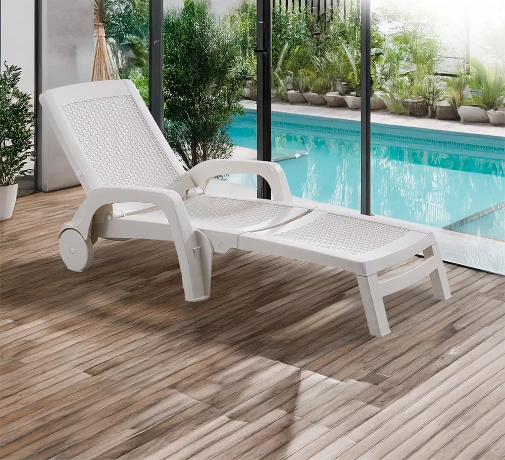 Omaha rattan hatású műanyag kerti napozóágy fehér