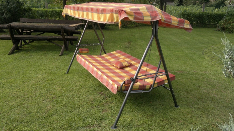 A képen látható párna csak illusztráció! A hintaágyhoz aktuálisan választható párnákról, minden esetben, még a megrendelés teljesítése előtt e-mailben egyeztetünk a kedves vásárlóval! Tehát a hintaágyat nem a képen látható párnával szállítjuk!