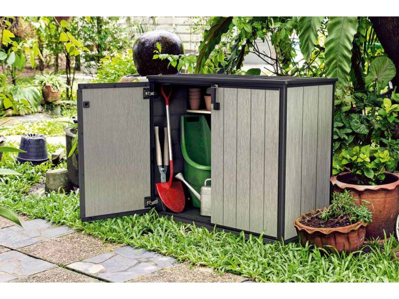 Patio Store Festhető műanyag kerti tároló barnás - szürke