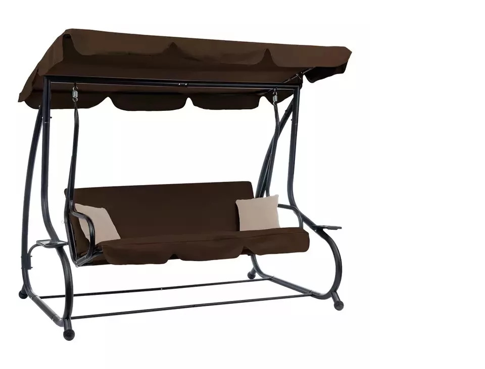 A 3 személyes kerti hinta lehetővé teszi, hogy szeretteivel a kertben vagy a teraszon pihenjen. Állítható napellenzővel van felszerelve, amely hatékonyan véd a napfény ellen. Optimálisan a felhasználó igényeihez igazítható. A konstrukcióban alkalmazott üléslehajtási funkciónak köszönhetően a hinta lehetővé teszi a pihenést bármilyen pozícióban. Az acélszerkezet biztosítja a teljes bútordarab stabilitását és tartósságát. A tető, az ülés és a párnák poliészterből készültek, amely jobban ellenáll a nedvességnek, így tökéletes kültéri használatra.