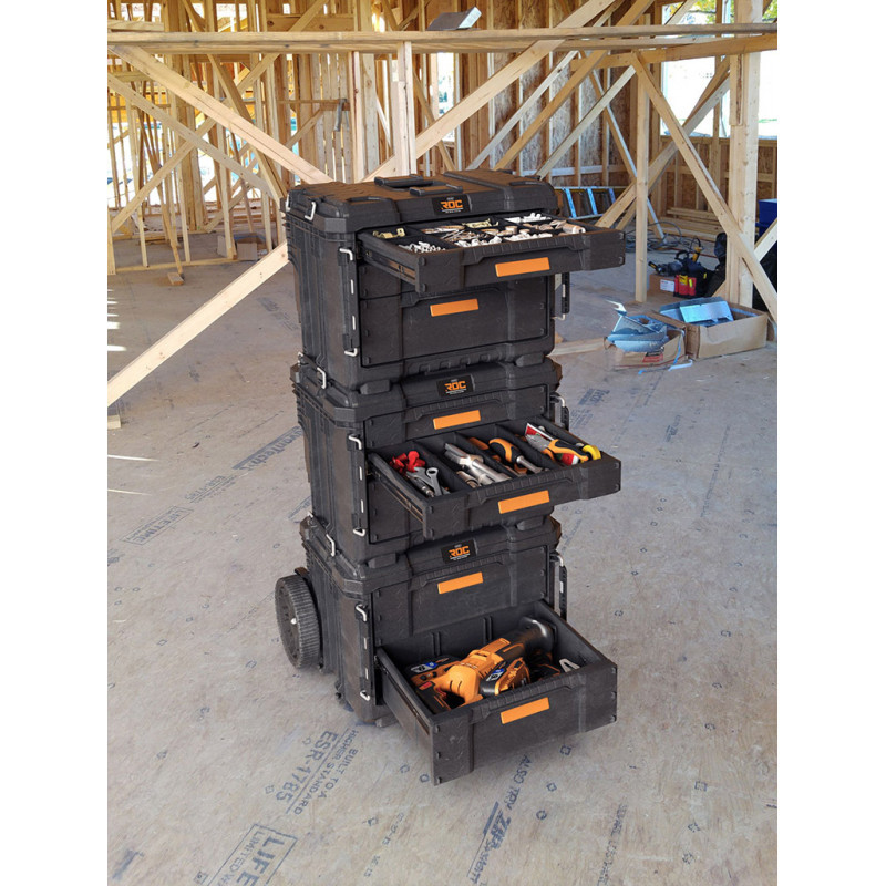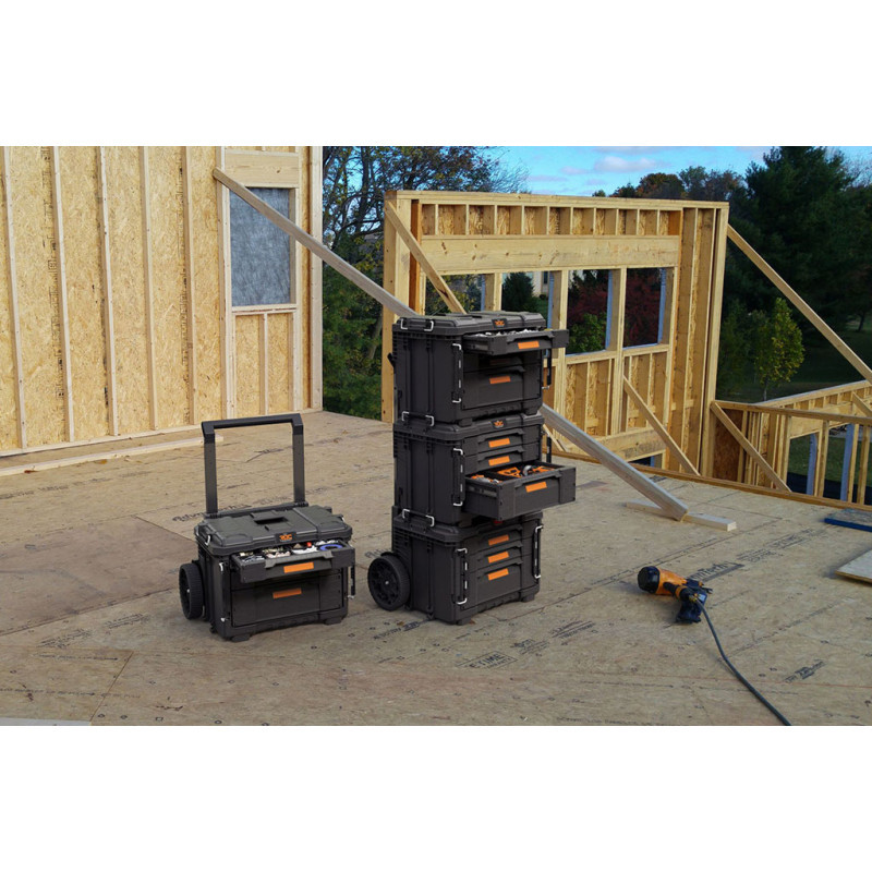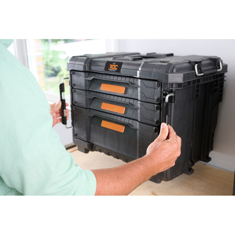 A Pro Gear XL 3 fiókos újdonság innovatív, prémium funkciókkal és a leginkább hozzáférhető, sokoldalú és mobil moduláris fiókkal van ellátva. Professzionális funkciók és lehetőségek, amelyek a munkaterület magas szintű ergonómiáját biztosítják. Az XL 3 fiókos modul kétféle fiókmérettel rendelkezik: 2 sekély fiók és 1 mély fiók a nagy és kis méretű szerszámok egyszerű és kényelmes tárolására, fém golyóscsapágyas fióksínek és egy lakatszem a biztonság érdekében. A fiókok elöl zárhatók a robusztus elülső záraknak köszönhetően, amelyek lehetővé teszik az XL fiókos egység biztonságos szállítását. A mellékelt elválasztók lehetővé teszik az apró alkatrészek belső rendszerezését és tárolását, valamint a mély fiókban történő egyértelmű felosztást az átláthatóság és a személyre szabott különféle szerszámtárolás érdekében, így a berendezése rendszerezett marad. Az XL 3 fiókos egység kompatibilis a 9”-os kerékegységgel (nem tartozék). Hozzáférhető és rendezett munkaterület kialakítása a fiókok felakasztásakor – Fix-and- Hold mechanizmus (falitartó konzol). A műhely- és munkaterületi teendőid magasabb színvonalra emelése érdekében úgy tervezték, hogy ellenálljon mindenféle durva munkaterületnek. Az XL 3 fiók lehet a Pro Gear moduláris mobilrendszer alapegysége, könnyű hozzáférést biztosít a szerszámokhoz az alsó rekeszből, vagy létrehozható egy teljes fiókos felépítmény több termék egymáshoz kapcsolaásával felülről lefelé. A Pro Gear XL 3 fiókos egység teljes mértékben kompatibilis a Pro Gear System 2.0 és 1.0 termékeivel. Szabja testre tárolási megoldásait az egyszerű szállítás, rendszerezés és hozzáférhetőség érdekében az XL 3 fiókos szerszámossal.