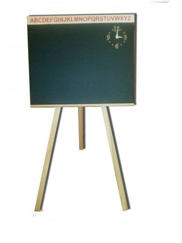 Erre a rajztáblára krétával rajzolhat, amit egy szivaccsal egyszerűen letörölhet, és újra alkothat. Ennek egyik különlegessége, hogy a tábla részén egy fa óra található,melynek mutatói mozgathatók,és amivel könnyen és játszva elsajátíthatók az analóg óra alapjai. A tábla felső lécén pedig a nyomtatott ABC alap betűi helyezkednek el, melyet gyermeke a kréta segítségével lemásolhat.