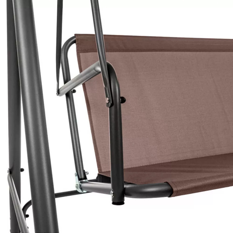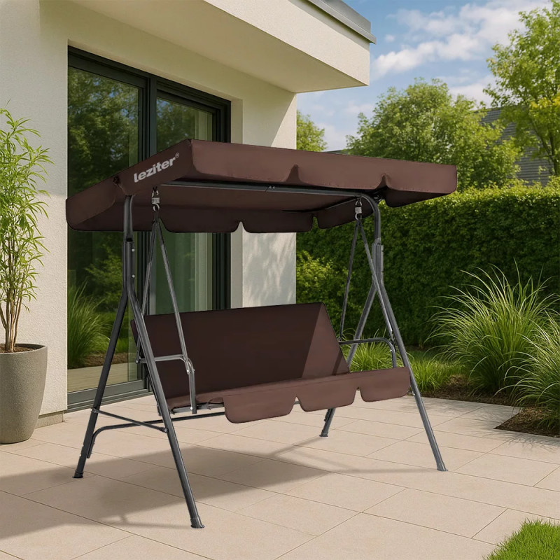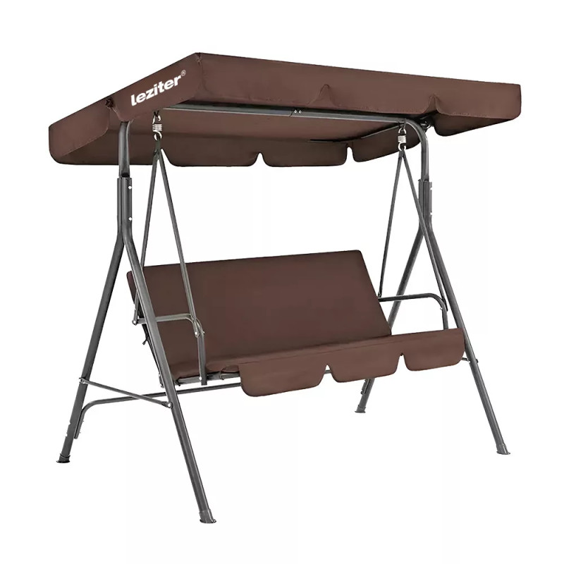 A poliészter tető nem csak a nap káros UV-sugárzása ellen nyújt védelmet, hanem egy kis menedéket is biztosít az enyhébb esőzések során. Az anyaga ellenáll a napfény okozta kifakulásnak, így a hintaágy színe hosszú ideig megőrzi eredeti beige árnyalatát.