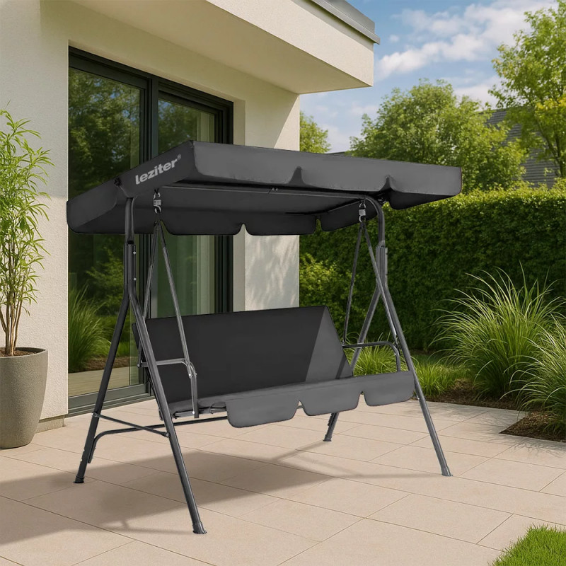A poliészter tető nem csak a nap káros UV-sugárzása ellen nyújt védelmet, hanem egy kis menedéket is biztosít az enyhébb esőzések során. Az anyaga ellenáll a napfény okozta kifakulásnak, így a hintaágy színe hosszú ideig megőrzi eredeti beige árnyalatát.