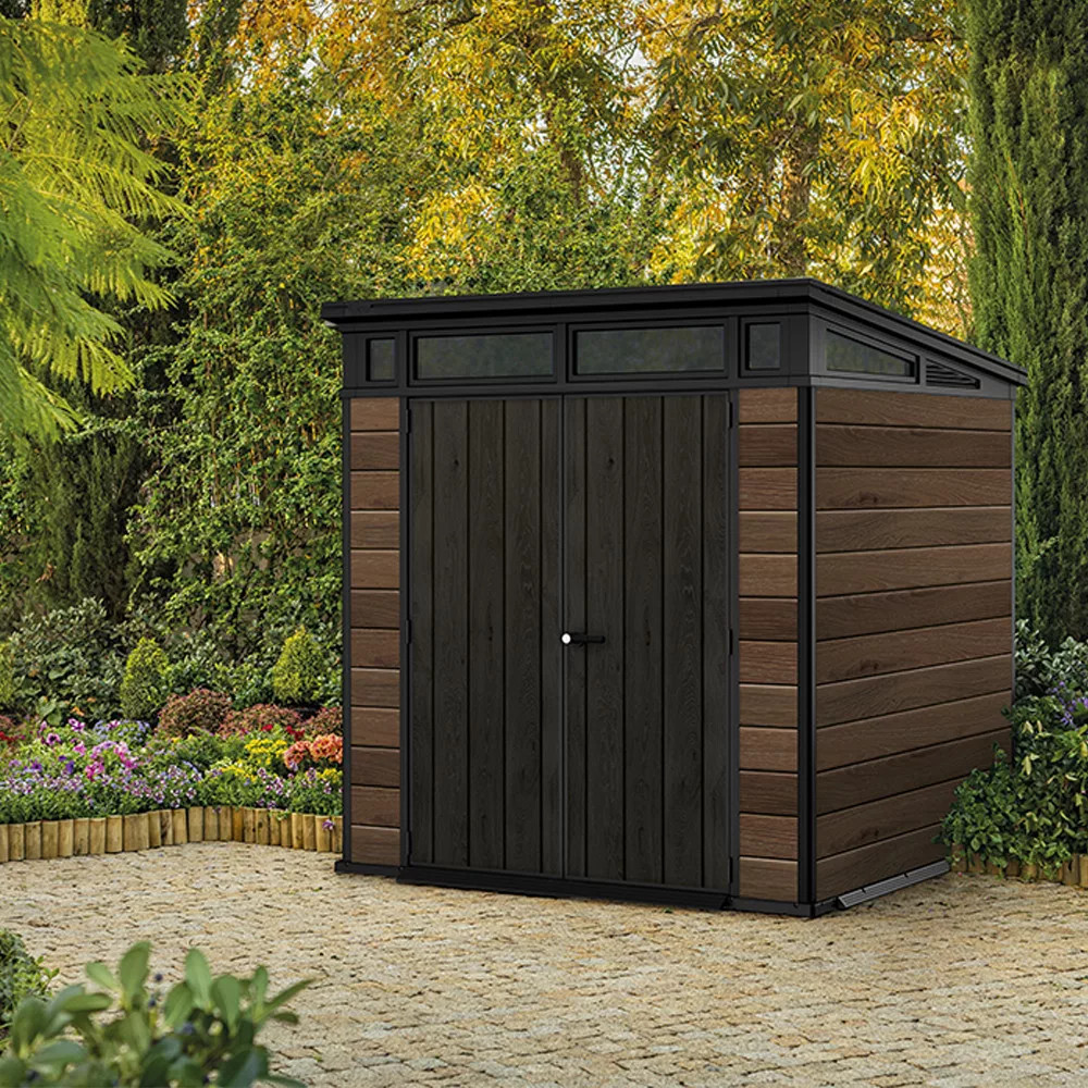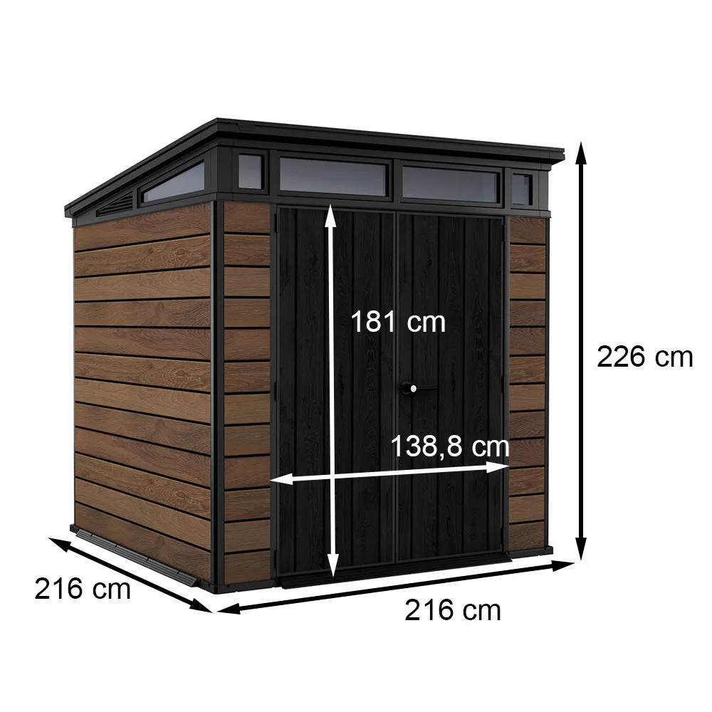 Az Siganature PENTHOUSE 7X7 minden tekintetben modern, és az ablaksáv feletti ferde tetővel büszkélkedhet, letisztult dizájnnal. A tároló amely a barkácsmunkaállomástól a szabadtéri sportfelszerelésekig és kerti termékek tárolására alkalmas. A PENTHOUSE 7X7 SIGNATURE COLLECTION az egyedülálló DECOCOAT technológiával készült, amely amellett, hogy minden időjárásnak ellenáll, kiválóan alkalmas a kültéri használatra, és minden más technológiánál jobban megfelel a kültéri tervezési trendeknek. A DECOCOAT „Mint a fa, de jobb” technológia a gyanta kínézetét kínálja esztétikus felülettel. Ez a rendkívül modern és strapabíró fészer teljesen időjárásálló és karbantartást nem igényel – nem rozsdásodik, nem rothad vagy hámlik.