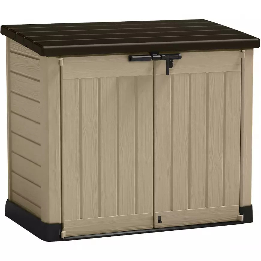A STORE-IT-OUT MIDI tárolót egyszerű és elegáns mintázat, univerzális színválaszték és természetes fára emlékeztető felület jellemzi. Opcionálisan a polcok beszerelése, amely tovább növeli a termék használati tulajdonságait. A tároló minden olyan helyen beválik, ahol nélkülözhetetlen a kerti tartozékok és háztartási tárgyak tárolása. Az erős szerkezet megvédi a tárolóban tárolt tárgyakat a nedvességtől, a magas minőségű anyag hosszú élettartamot garantálnak.
