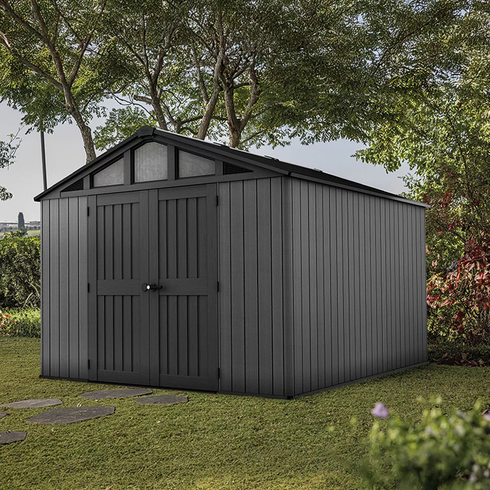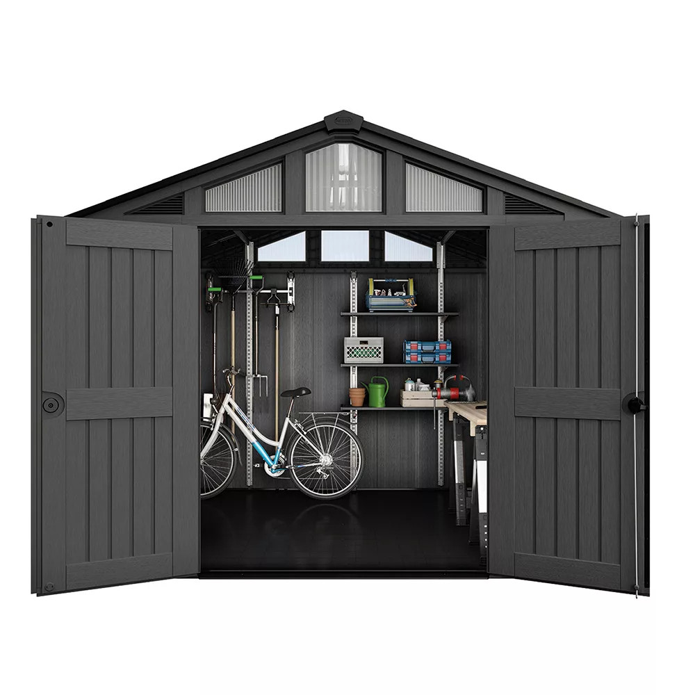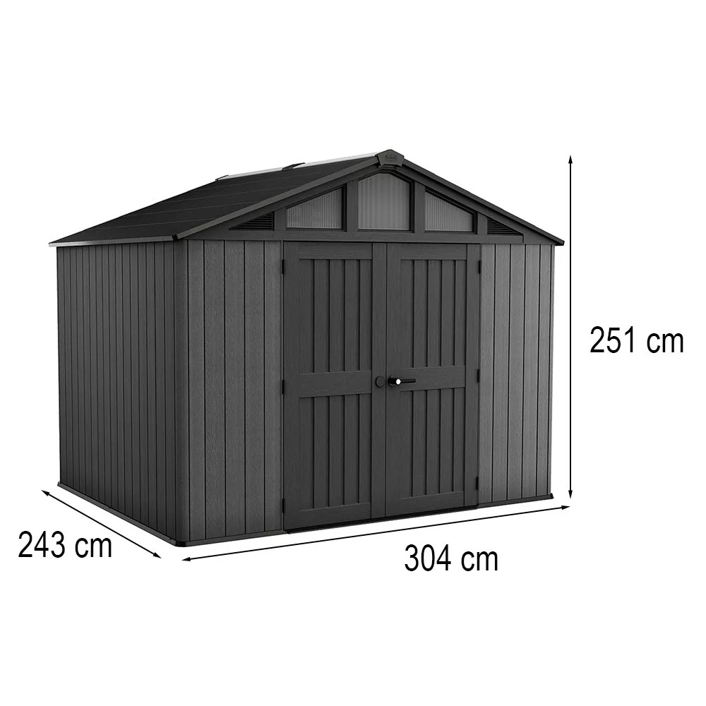 A Stronghold 10x8 műanyag kerti ház megoldást nyújt! Időjárásálló, masszív és tágas, így minden fontos eszköz védve lesz a csapadéktól, széltől és a napsütéstől.
