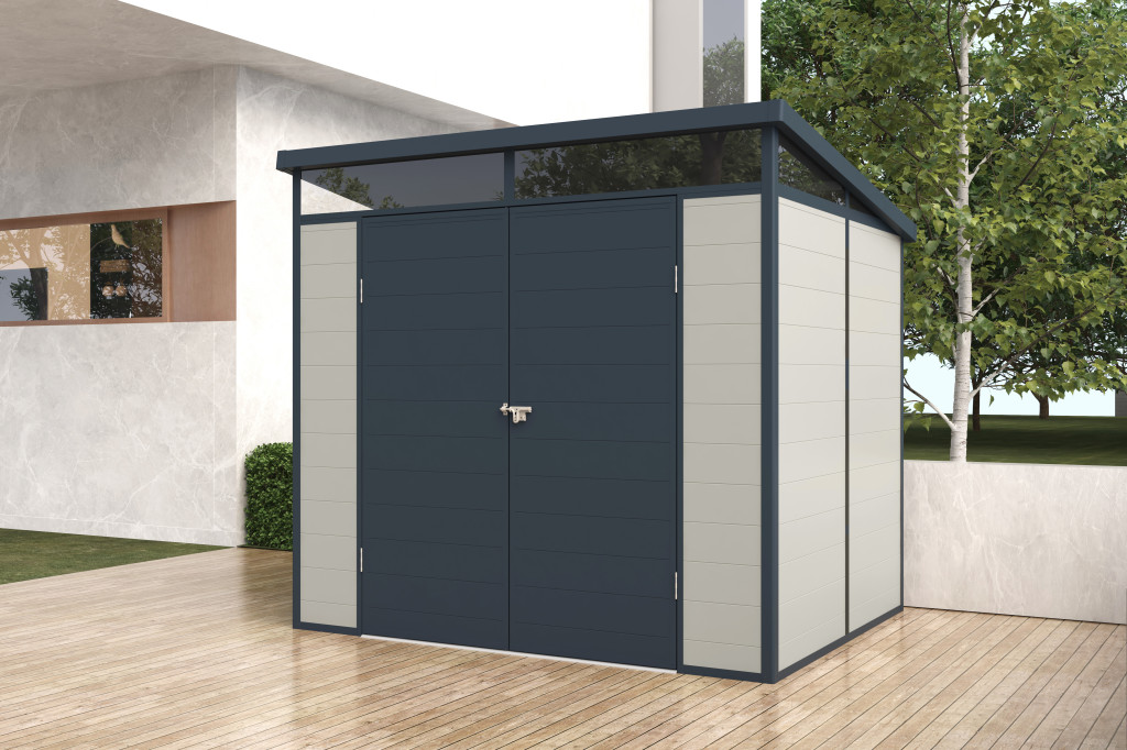 Toya B műanyag kültéri kerti ház szürke - fehér