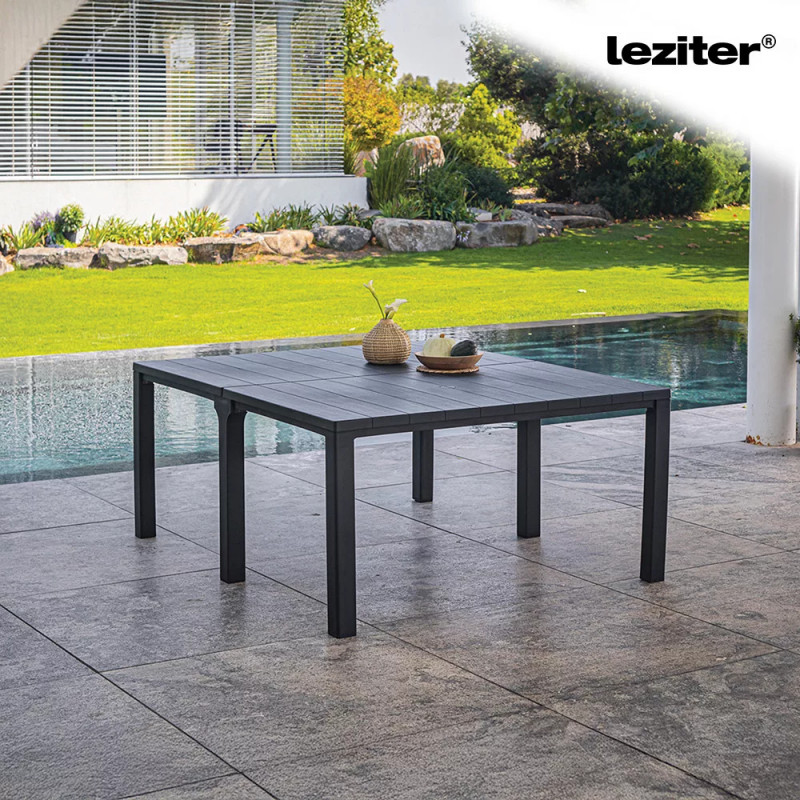 Az asztal masszív szerkezete stabil és tartós, így nem kell aggódnod a billegés vagy a deformálódás miatt. Az ellenálló anyagnak köszönhetően bármilyen időjárási körülmények között használhatod – eső, napsütés, hideg sem árt neki.