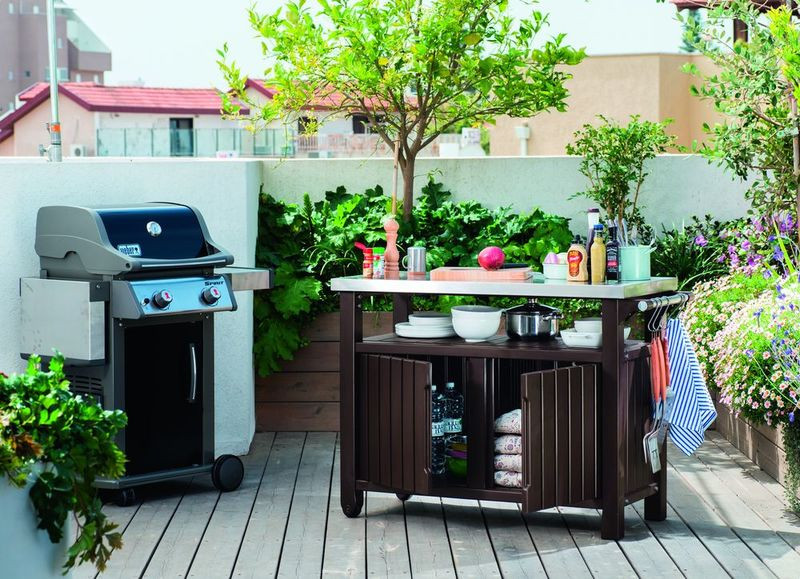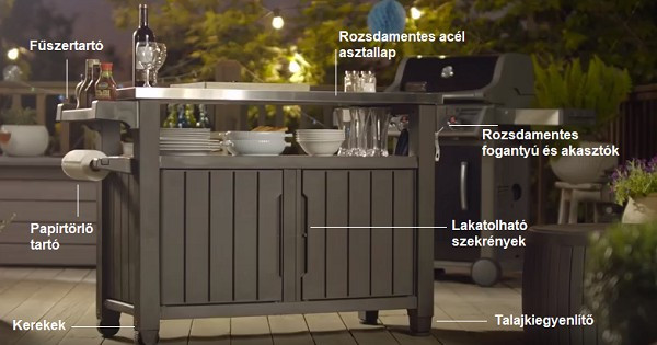 Unity XL műanyag kerti grill asztal barna 183L