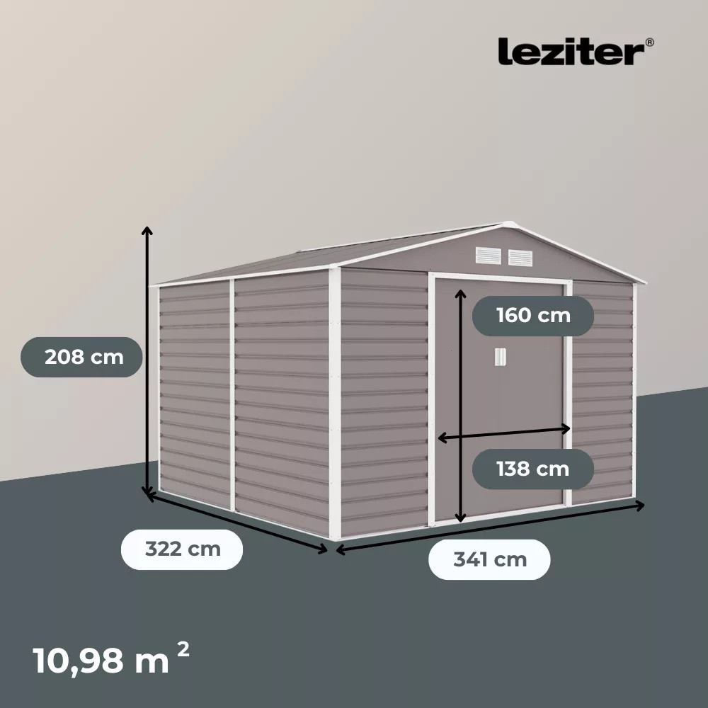 - Tágas belső tér: A tároló 10,98 m² alapterületű, így bőséges helyet kínál nagyobb kerti gépek, például fűnyírók és kerti traktorok elhelyezésére is. Az LHE-F-GW tároló ház kialakítása révén nem kell aggódnod a helyhiány miatt.