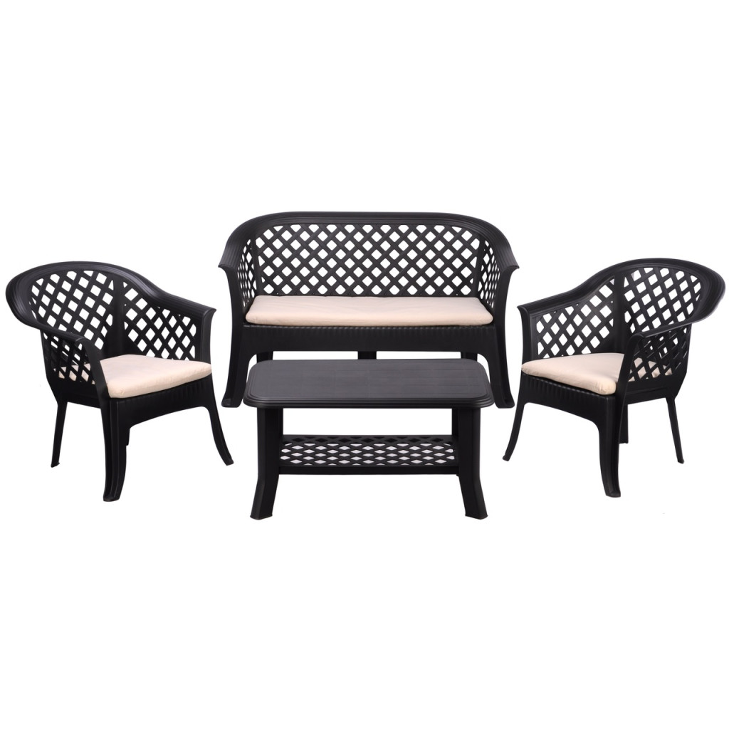 Nagyon kényelmes kerti szett. 100 kg feletti teherbírással. Könnyen tisztítható. 4 személy kényelmesen elfér rajta.