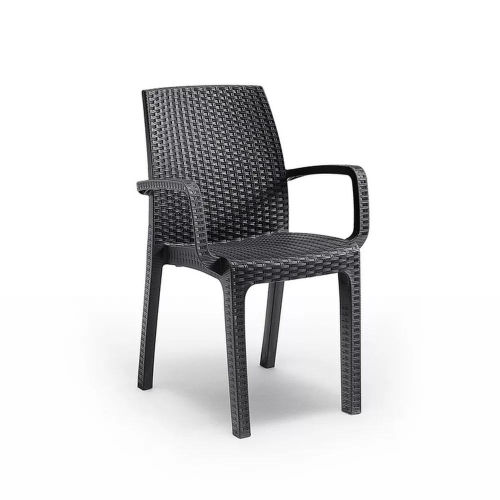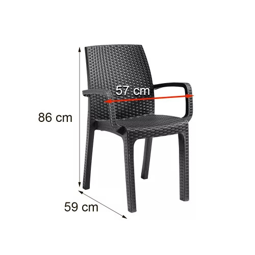 Verdi műanyag rattan hatású kerti karfás szék grafit szürke